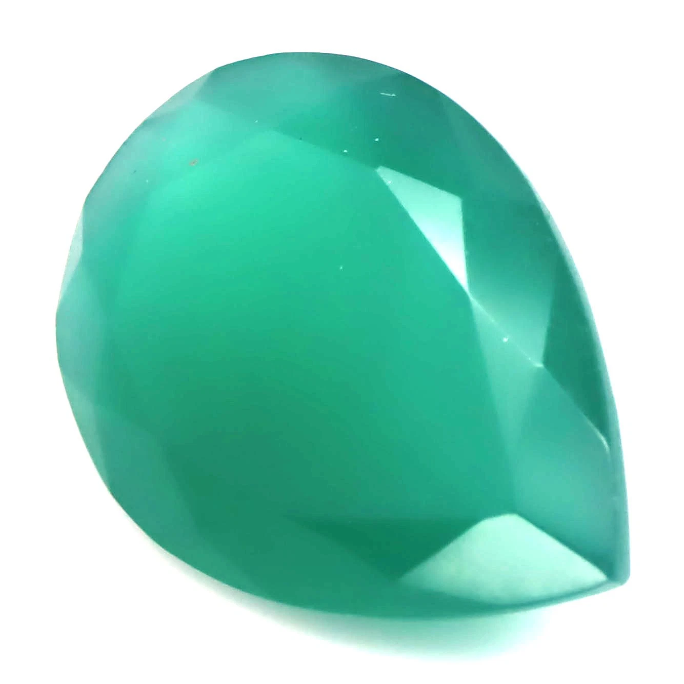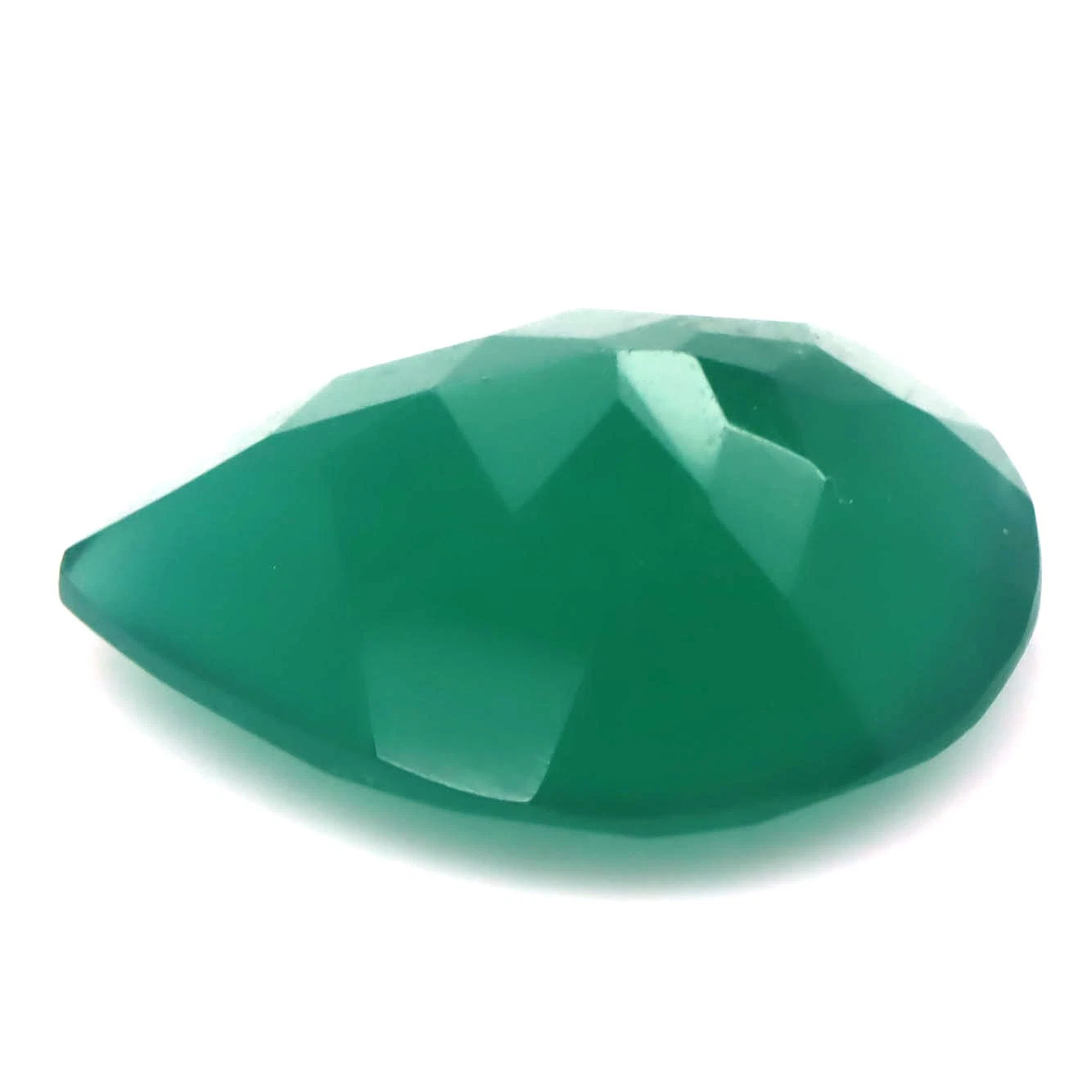 12.17 karátos csepp formájú, briliáns csiszolású természetes krómkalcedon drágakő. Mérete: 15.0 x 20.2 x 8.2 mm.