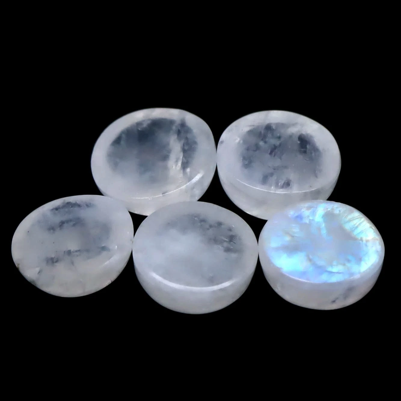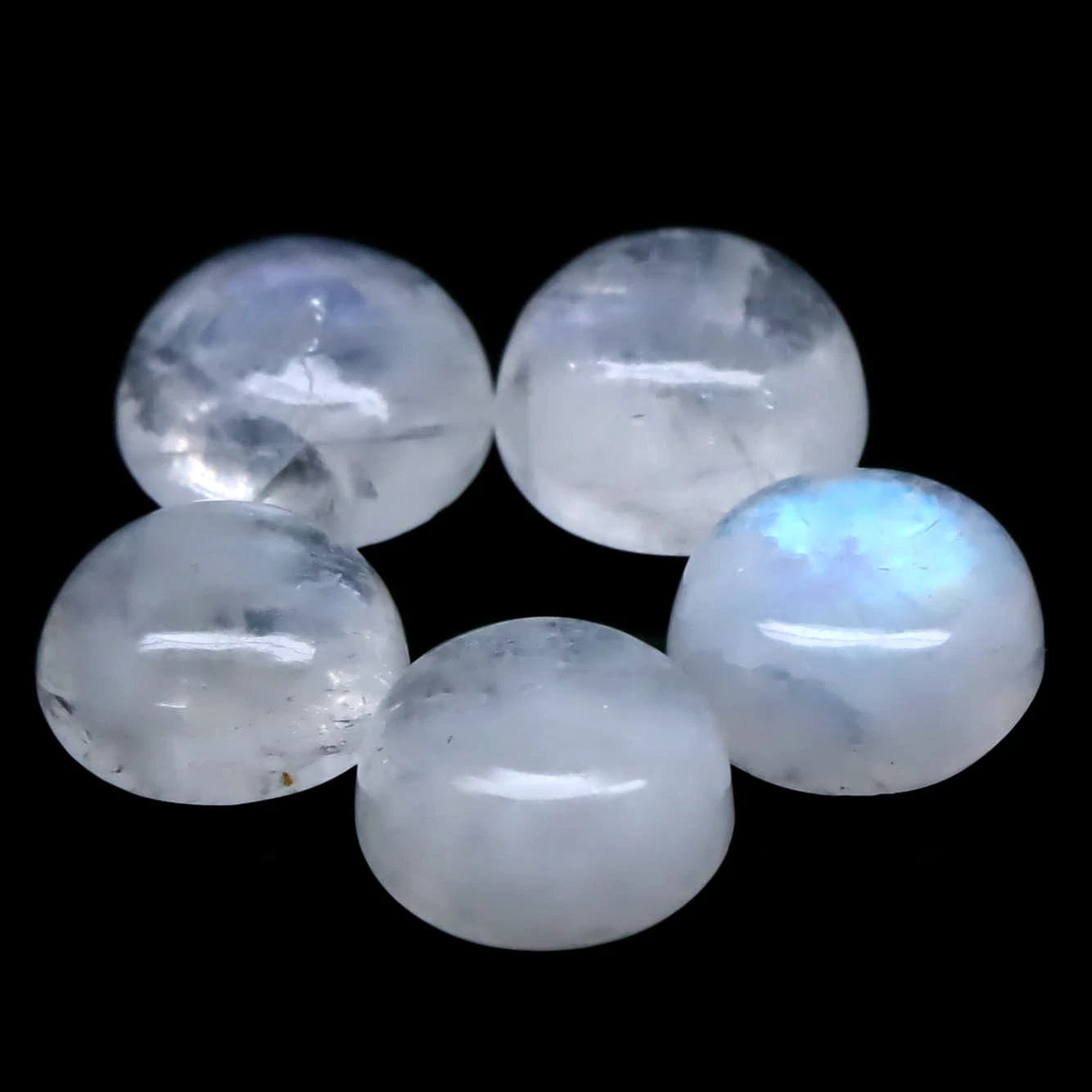 20.10 karátos, 5 darabos, kaboson csiszolású, természetes, kezelésmentes holdkő drágakő szett. Mérete: 10.2 x 5.0 - 10.0 x 5.0 mm.