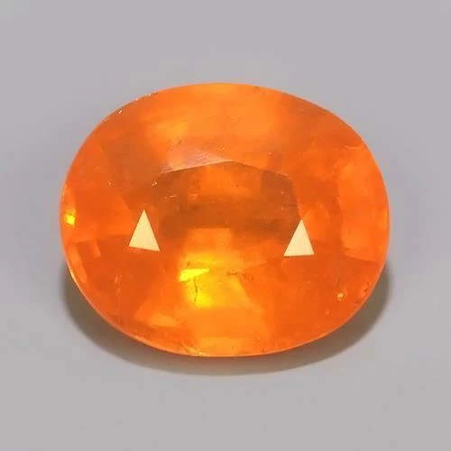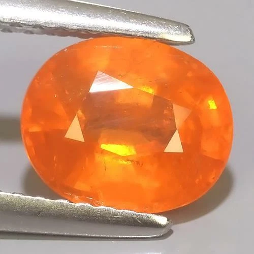 1.95 karátos, ovális formájú, vegyes csiszolású, természetes, kezelésmentes narancs színű szpesszartin drágakő. Mérete: 8.2 x 6.8 x 4.2 mm.