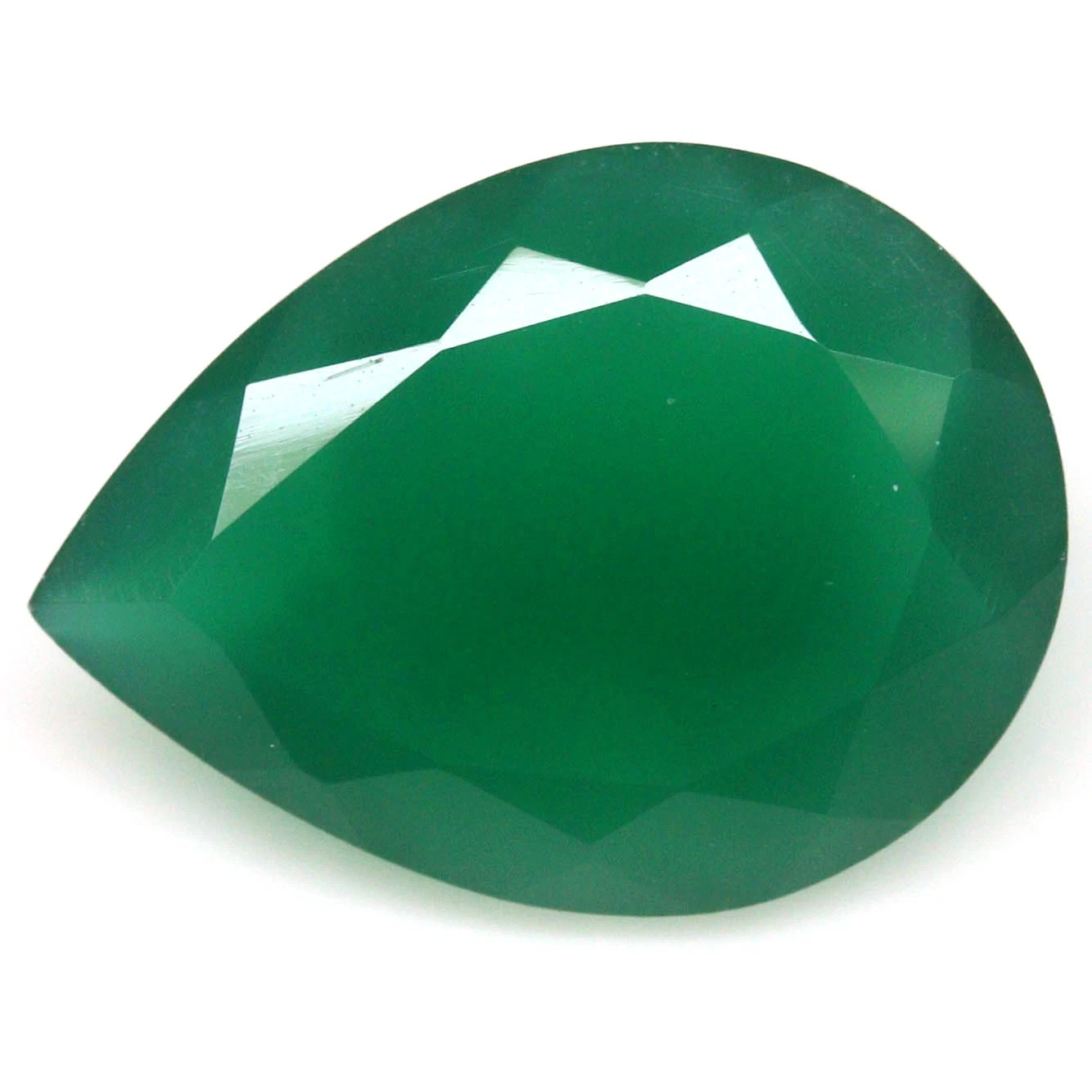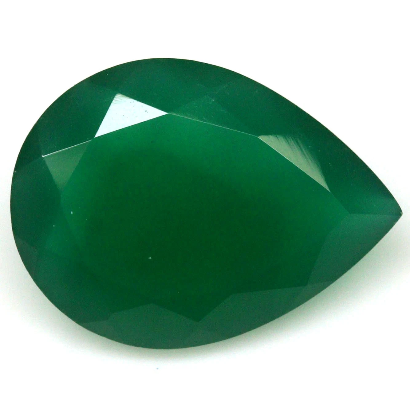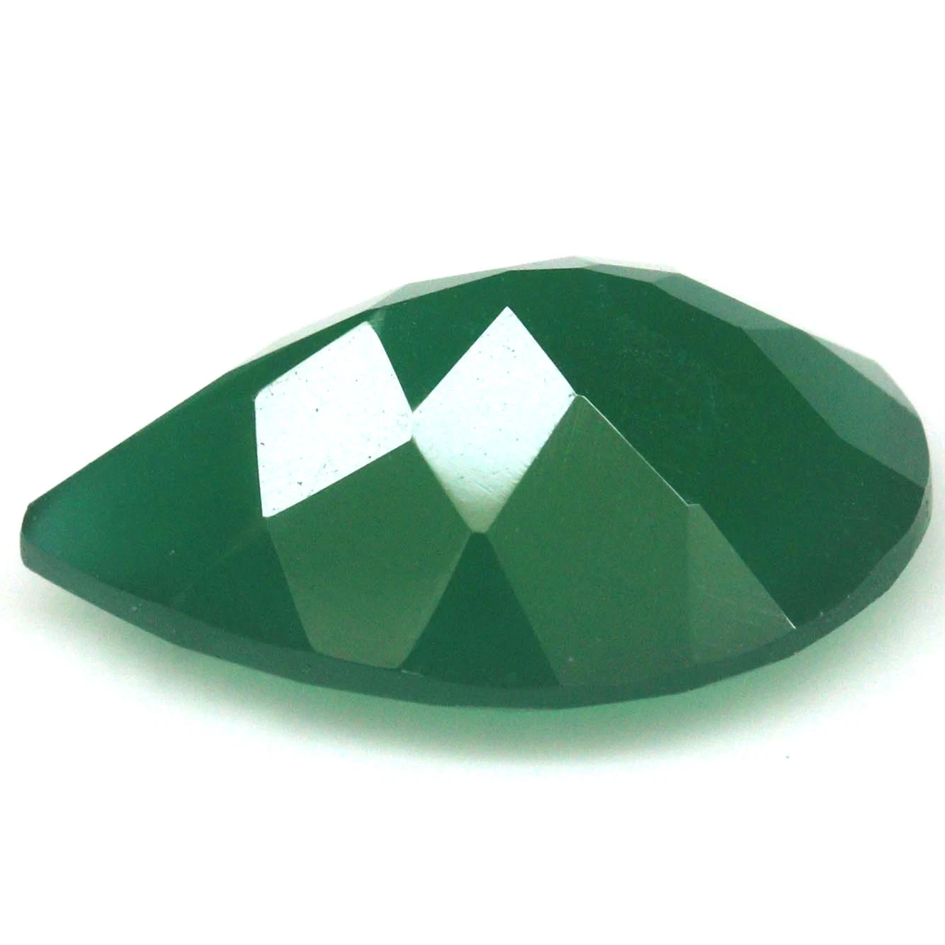 11.77 karátos csepp formájú, briliáns csiszolású természetes krómkalcedon drágakő. Mérete: 15.0 x 20.1 x 8.0 mm.