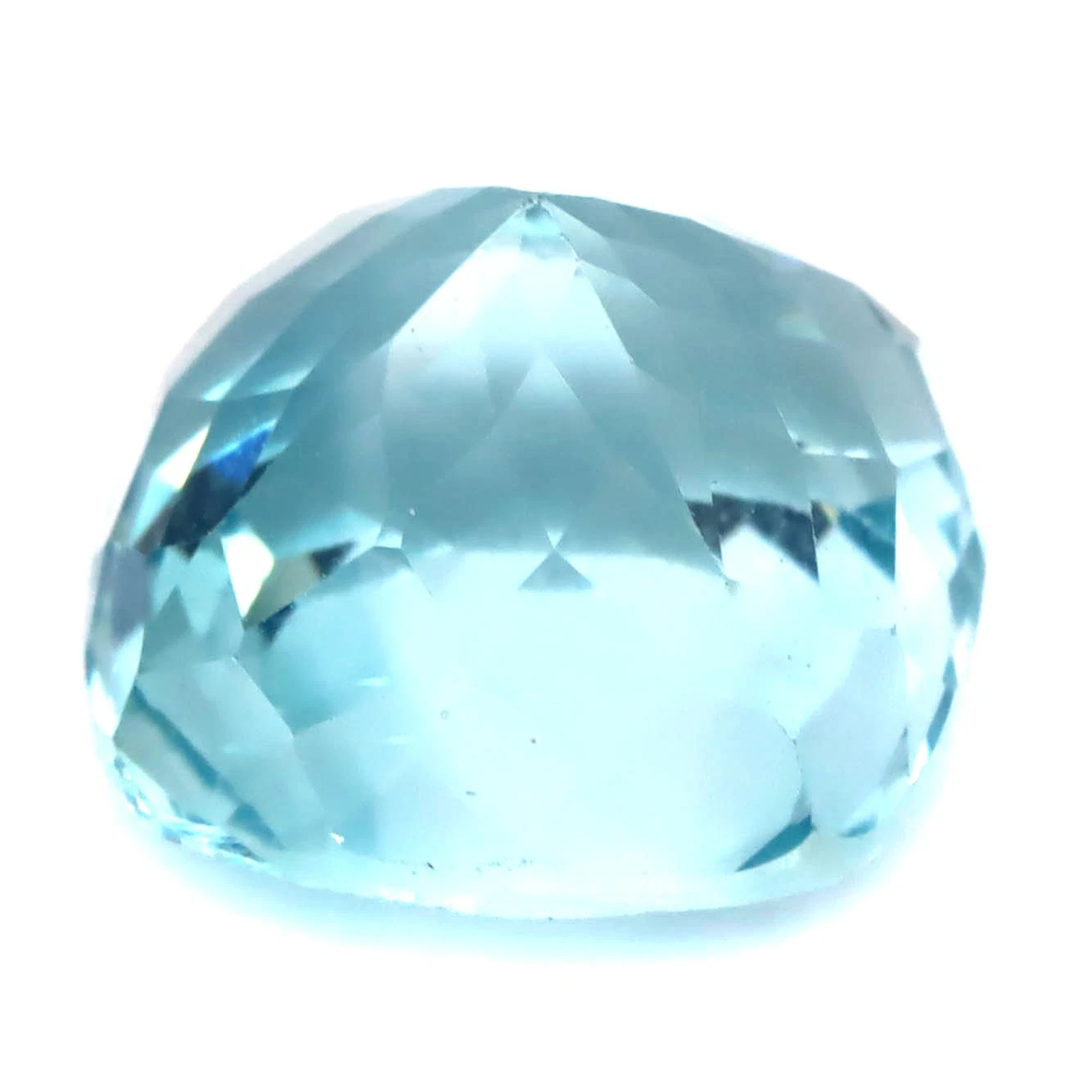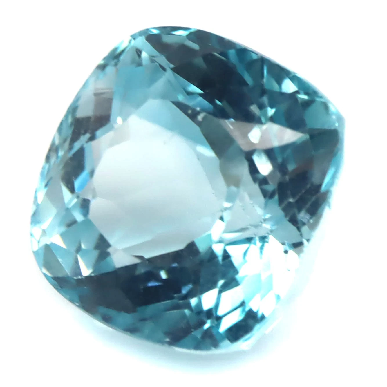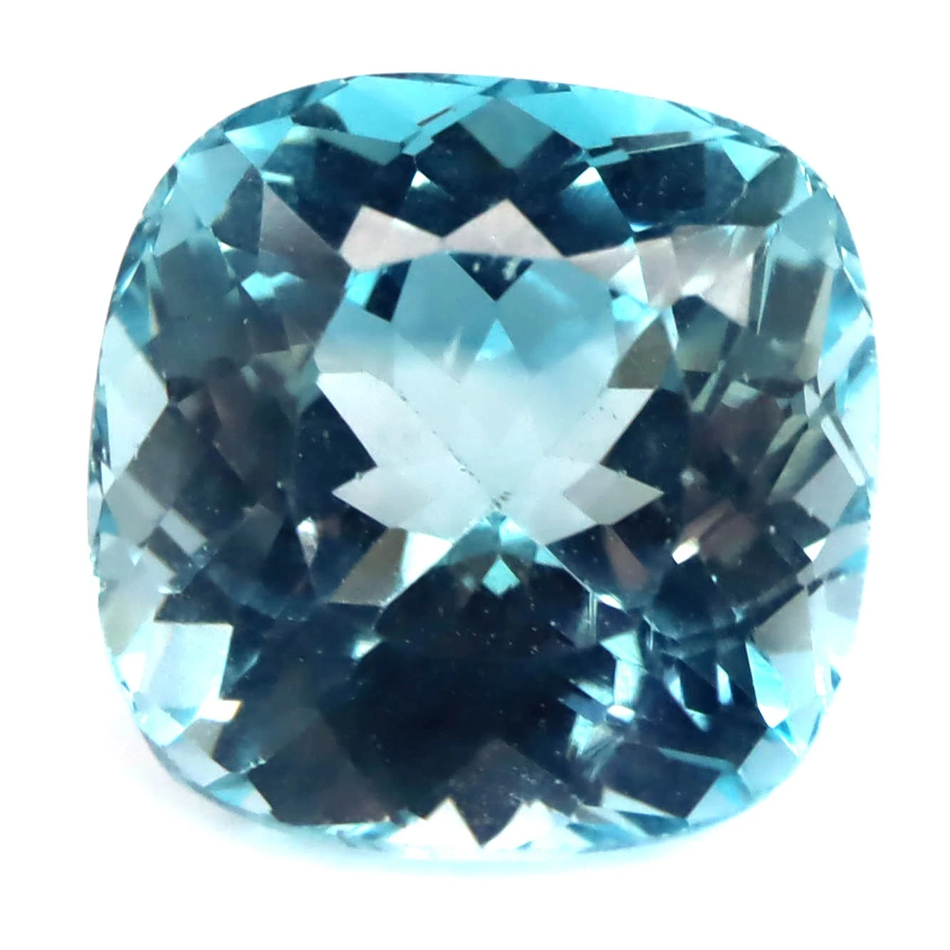 12.90 karátos, antik formájú, briliáns csiszolású, természetes, kezelt égszínkék topáz drágakő. Mérete: 12.7 x 12.7 x 9.6 mm.