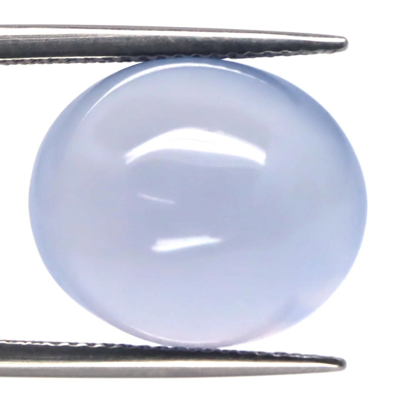 13.70 karátos kaboson csiszolású, ovális formájú, természetes kalcedon drágakő pár. Mérete: 14.1 x 16.3 x 9.1 mm.