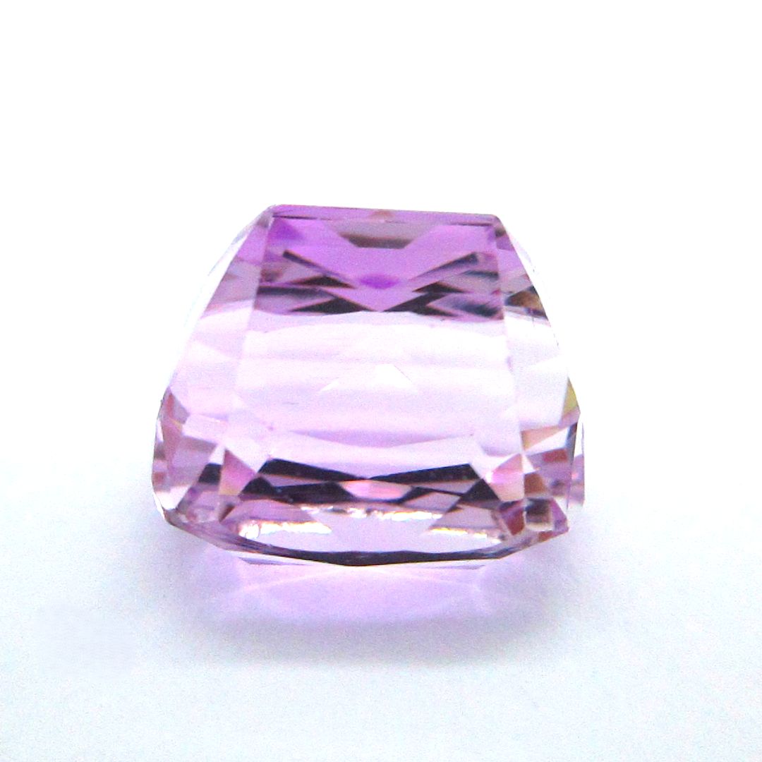 Tökéletes gyűrűkő lehet ez a párna formájú, teljesen tiszta, halvány színtónusú rózsaszín-lila, 12.10 karátos, különleges lépcsős csiszolású, foglalatlan kunzit drágakő Afganisztánból.