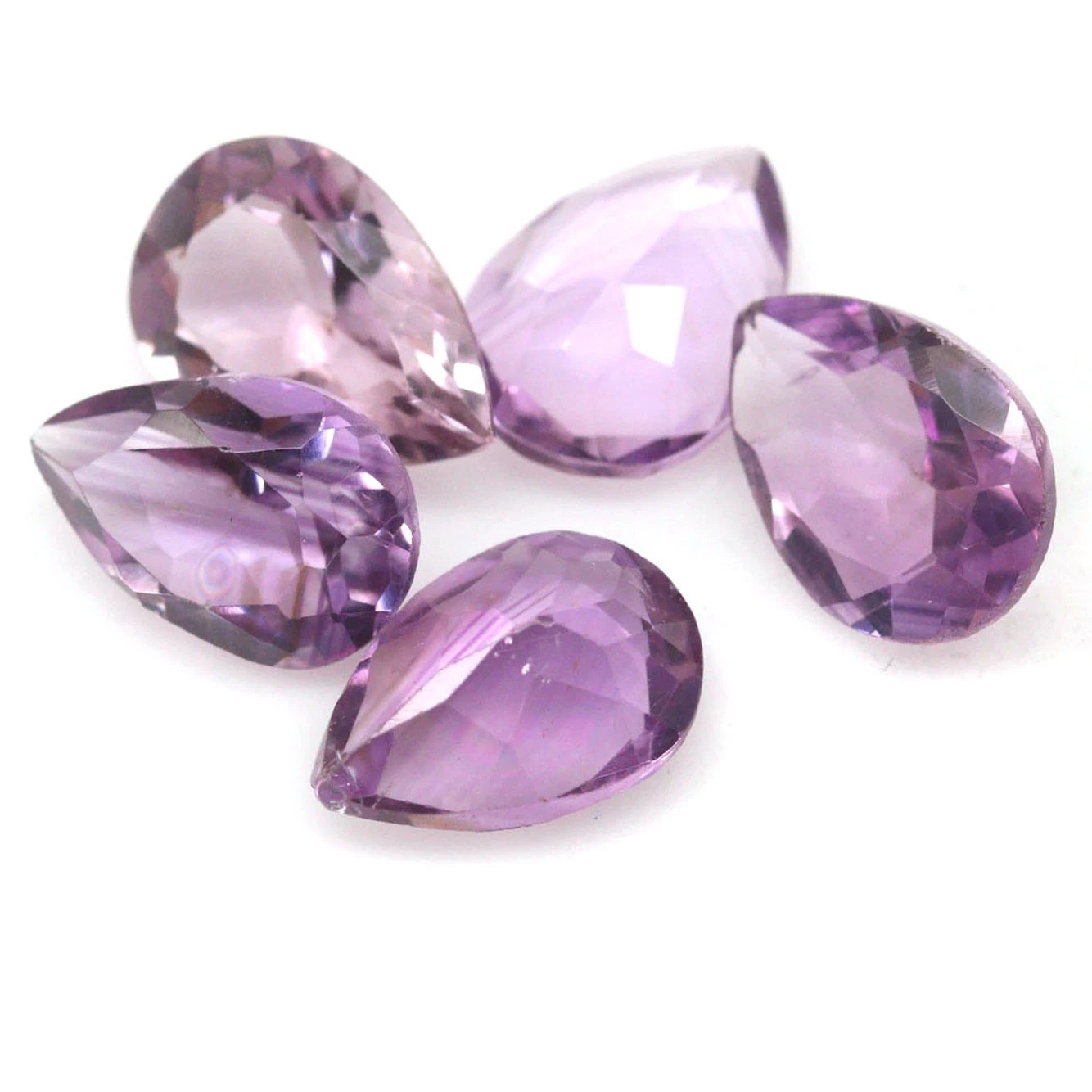 Összesen 16.90 karátos, 5 darabos, teljesen természetes, kezelésmentes ametiszt drágakő szett. Csepp forma briliáns csiszolás. Mérete: 9.1 x 12.8 x 4.9 - 8.5 x 12.6 x 6.1 mm.