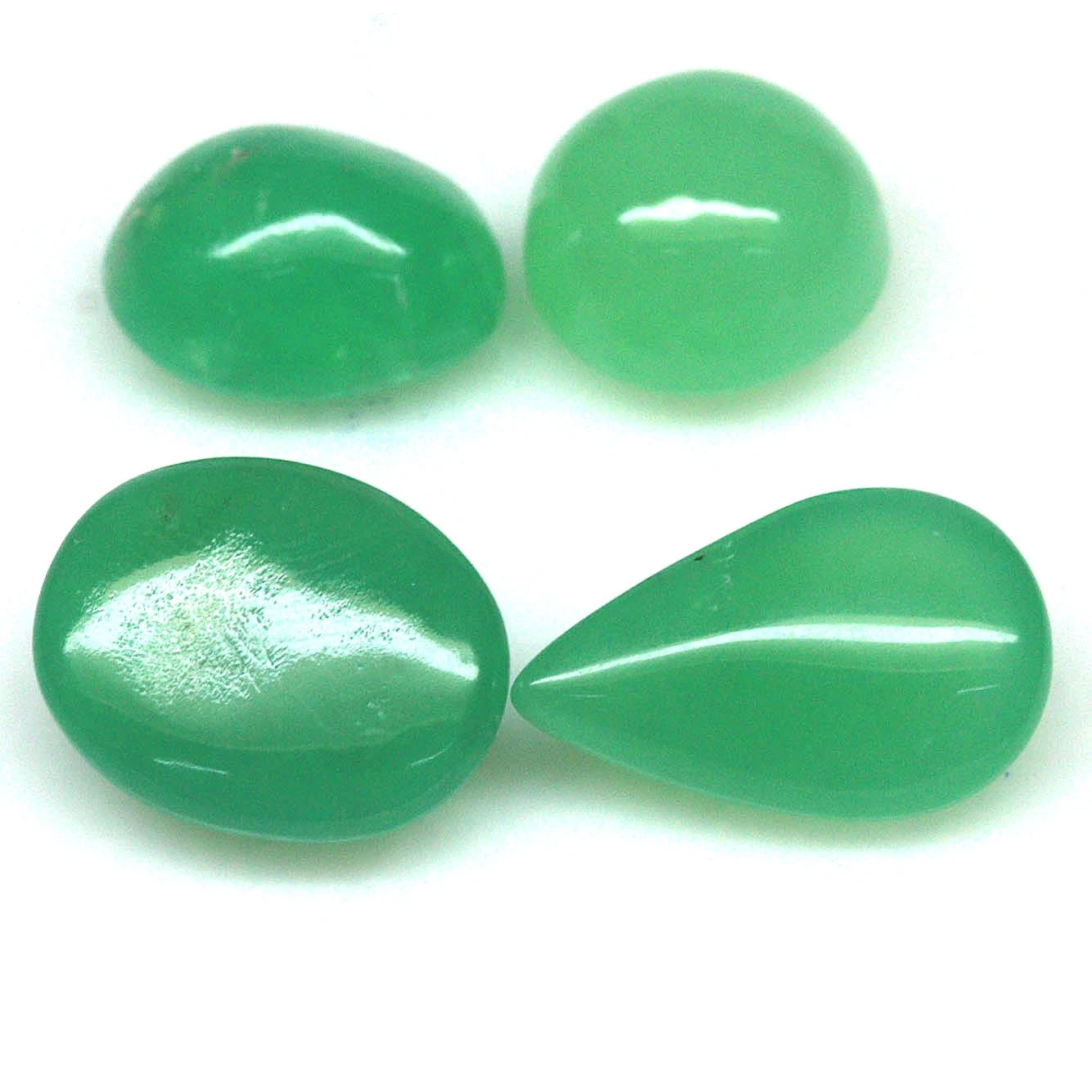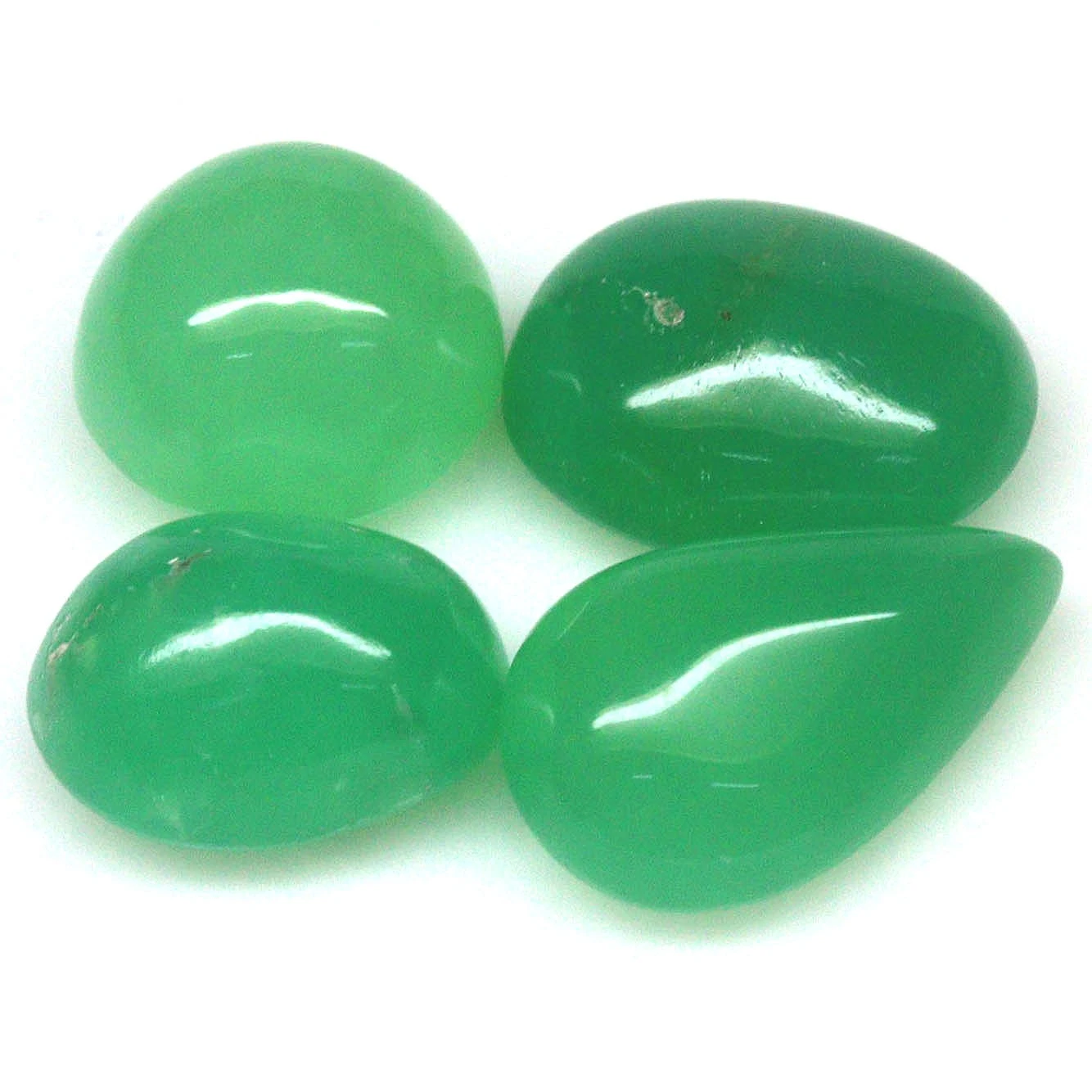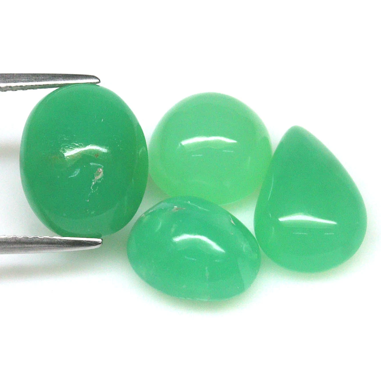 Összesen 19.59 karátos, 4 darabos, kaboson csiszolású, vegyes formájú, természetes, csodaszép almazöld krizopráz drágakő szett. Áttetsző minőség. Méretük: 10.5 x 13.0 x 5.9 - 9.0 x 11.4 x 6.4 mm.