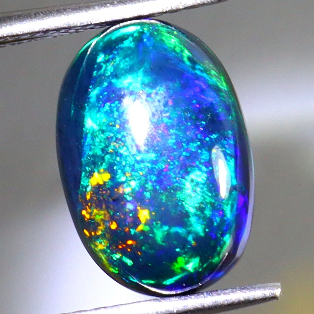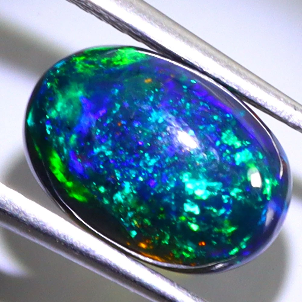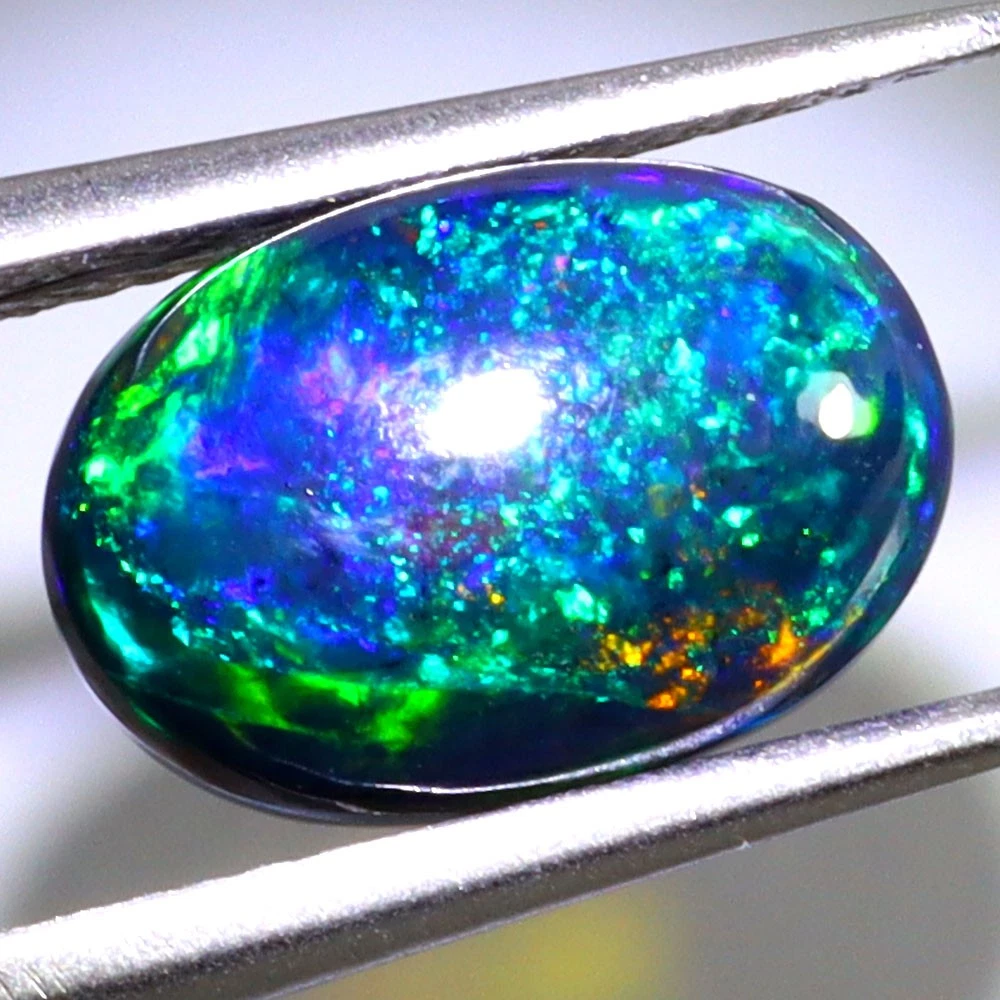 2.76 karátos, ovális formájú, kaboson csiszolású, természetes, foglalatlan, kiváló minőségű, színjátszó nemesopál drágakő.