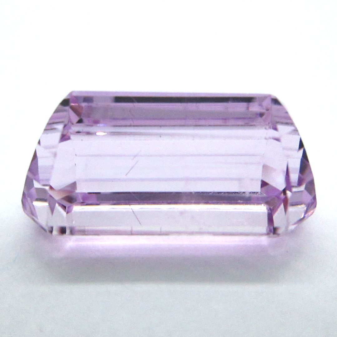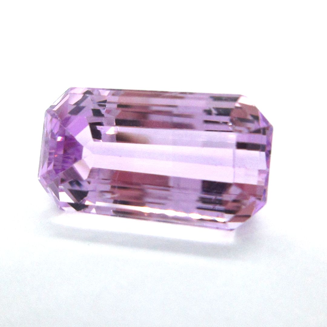 Tökéletes medálkő lehet ez a nyolcsarkos formájú, teljesen tiszta, intenzív színtónusú rózsaszín-lila, nagy méretű 22.00 karátos, különleges lépcsős csiszolású, foglalatlan kunzit drágakő Afganisztánból.