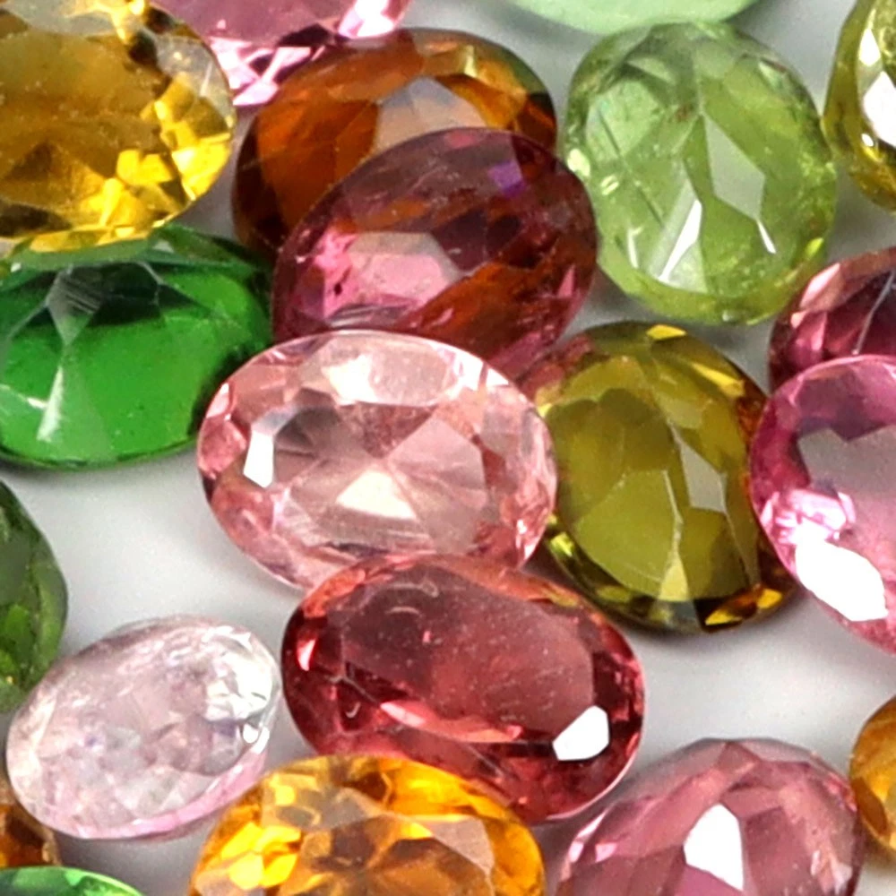 4.09 karátos, 36 darabos, ovális formájú, briliáns csiszolású, természetes, foglalatlan, színes turmalin drágakő szett Mozambikból. Teljesen természetes, nem kezelt.