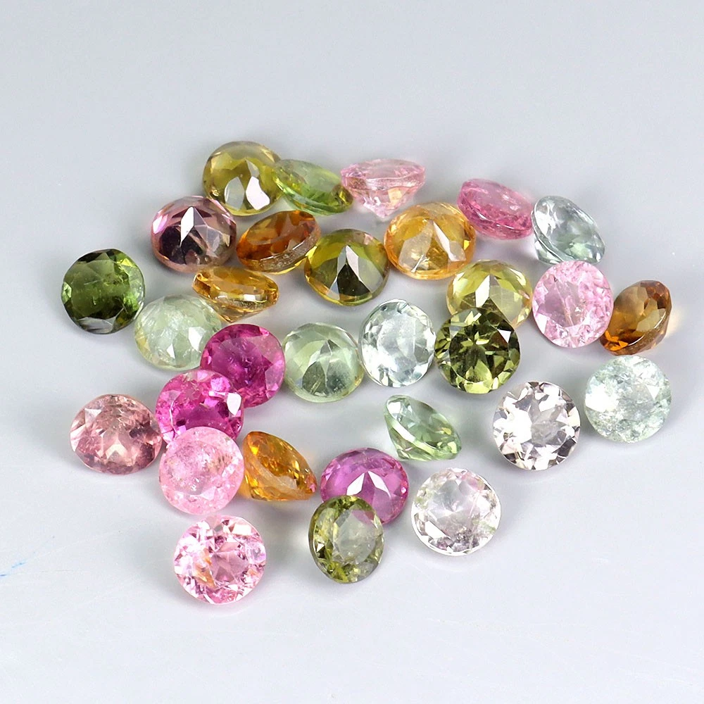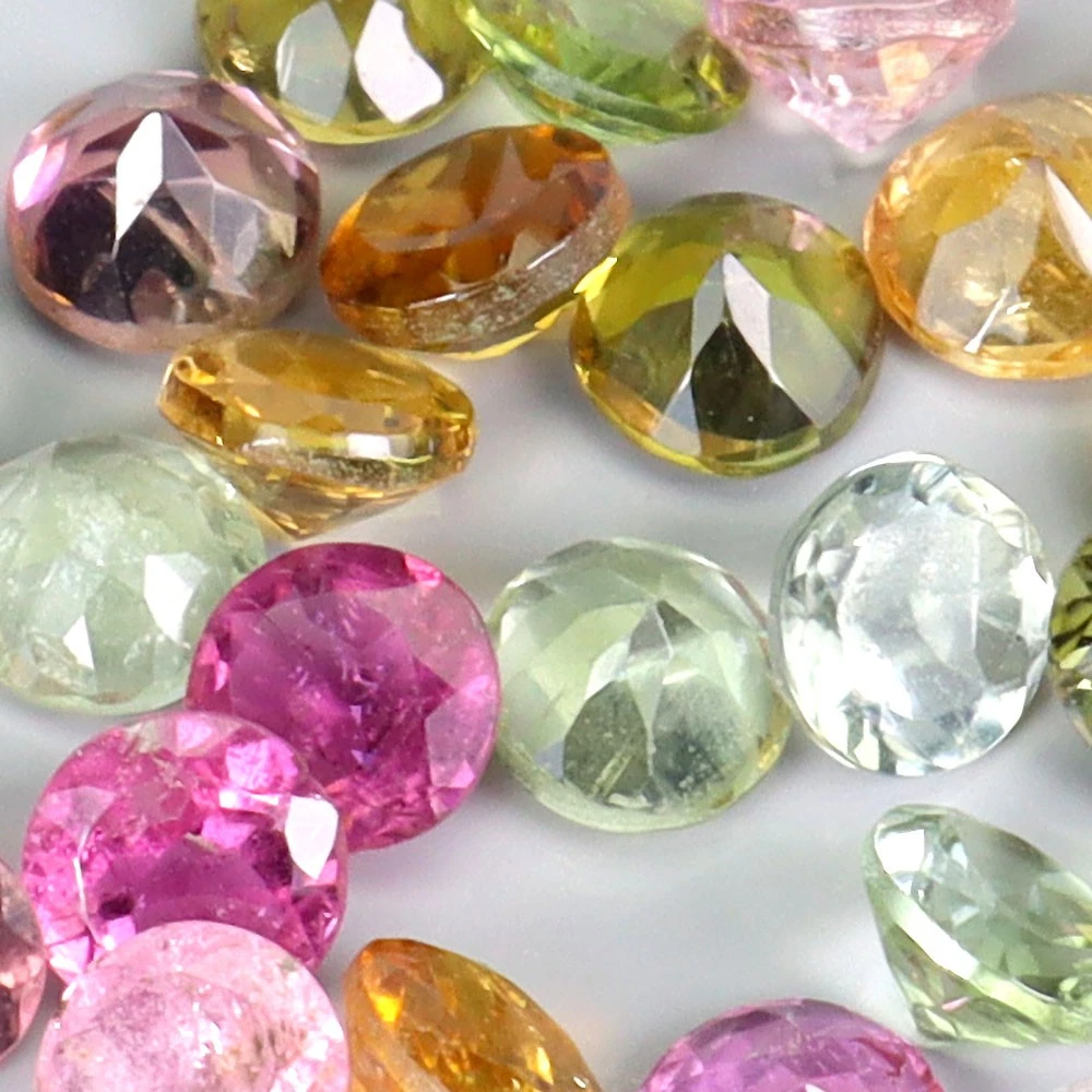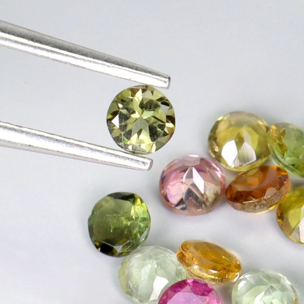 4.59 karátos, 30 darabos, kerek formájú, briliáns csiszolású, természetes, foglalatlan, színes turmalin drágakő szett Mozambikból. Teljesen természetes, nem kezelt.