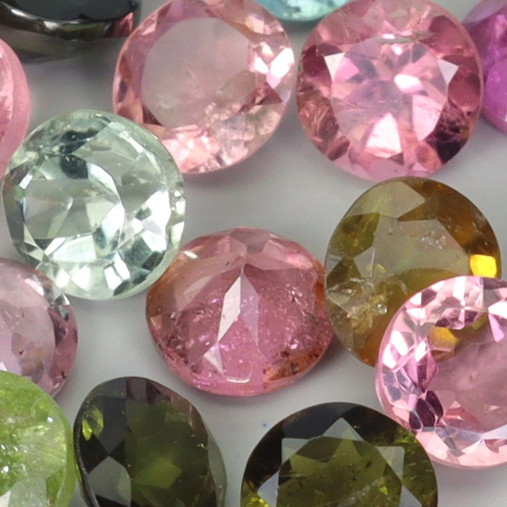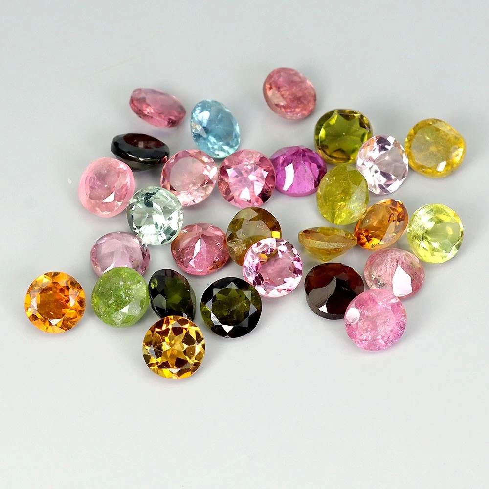 5.30 karátos, 28 darabos, kerek formájú, briliáns csiszolású, természetes, foglalatlan, színes turmalin drágakő szett Mozambikból. Teljesen természetes, nem kezelt.