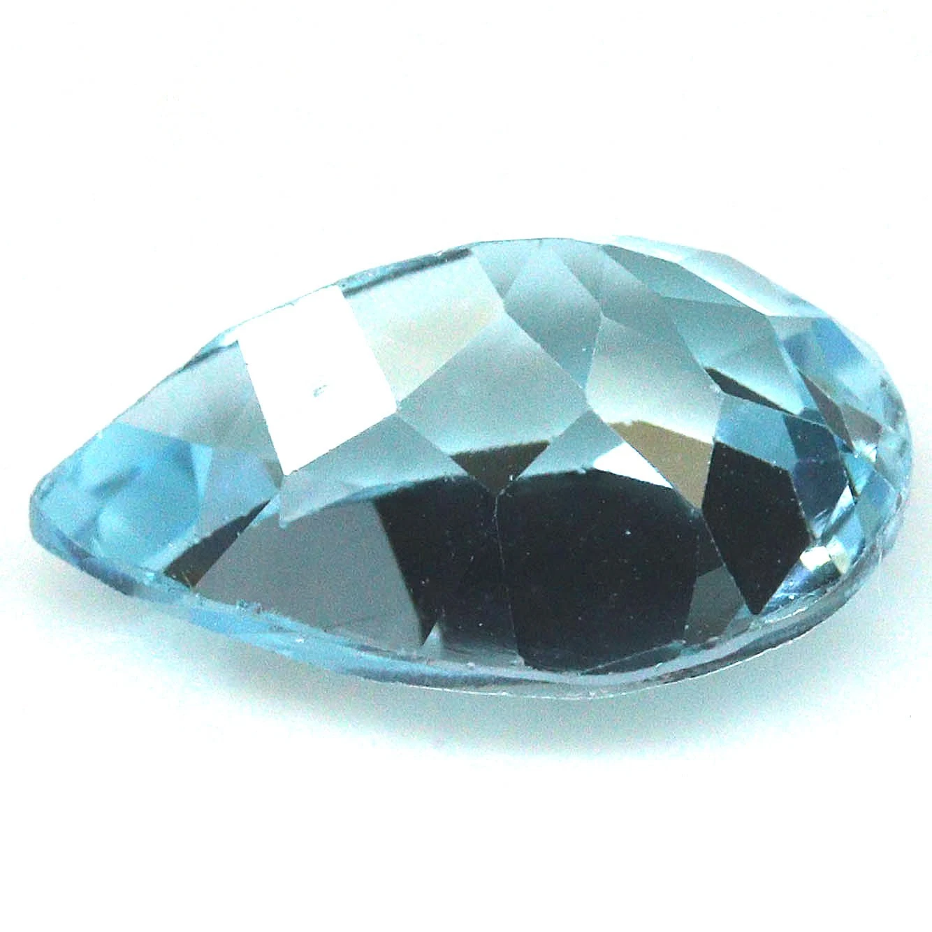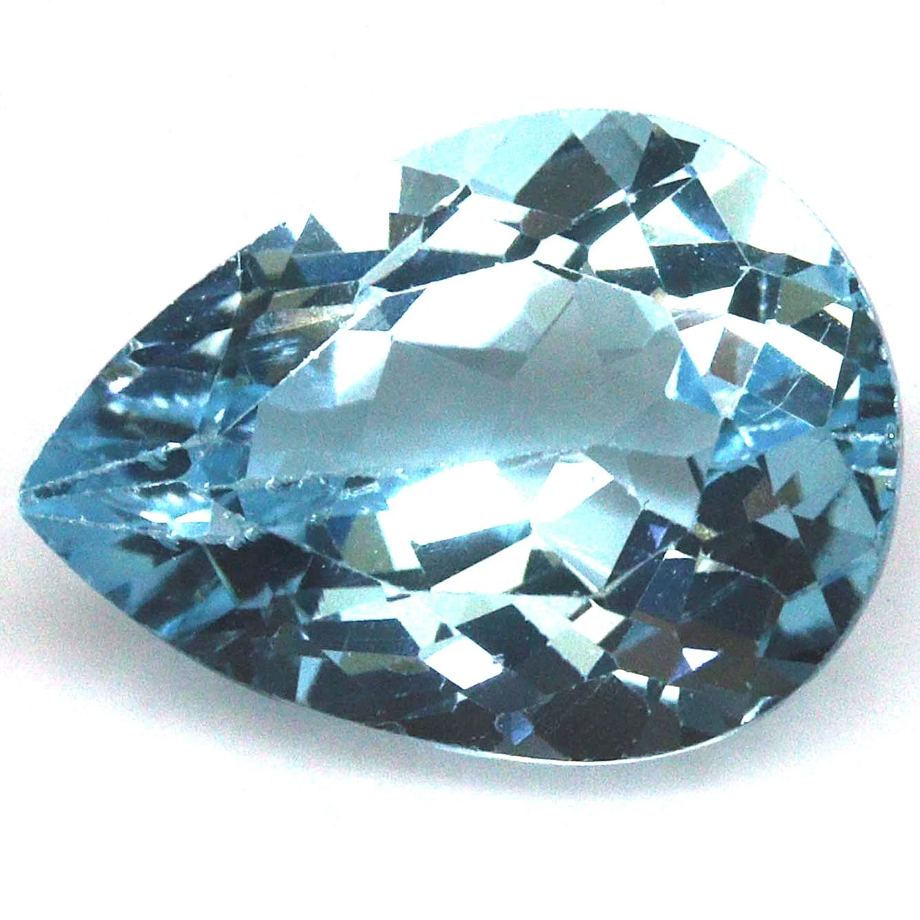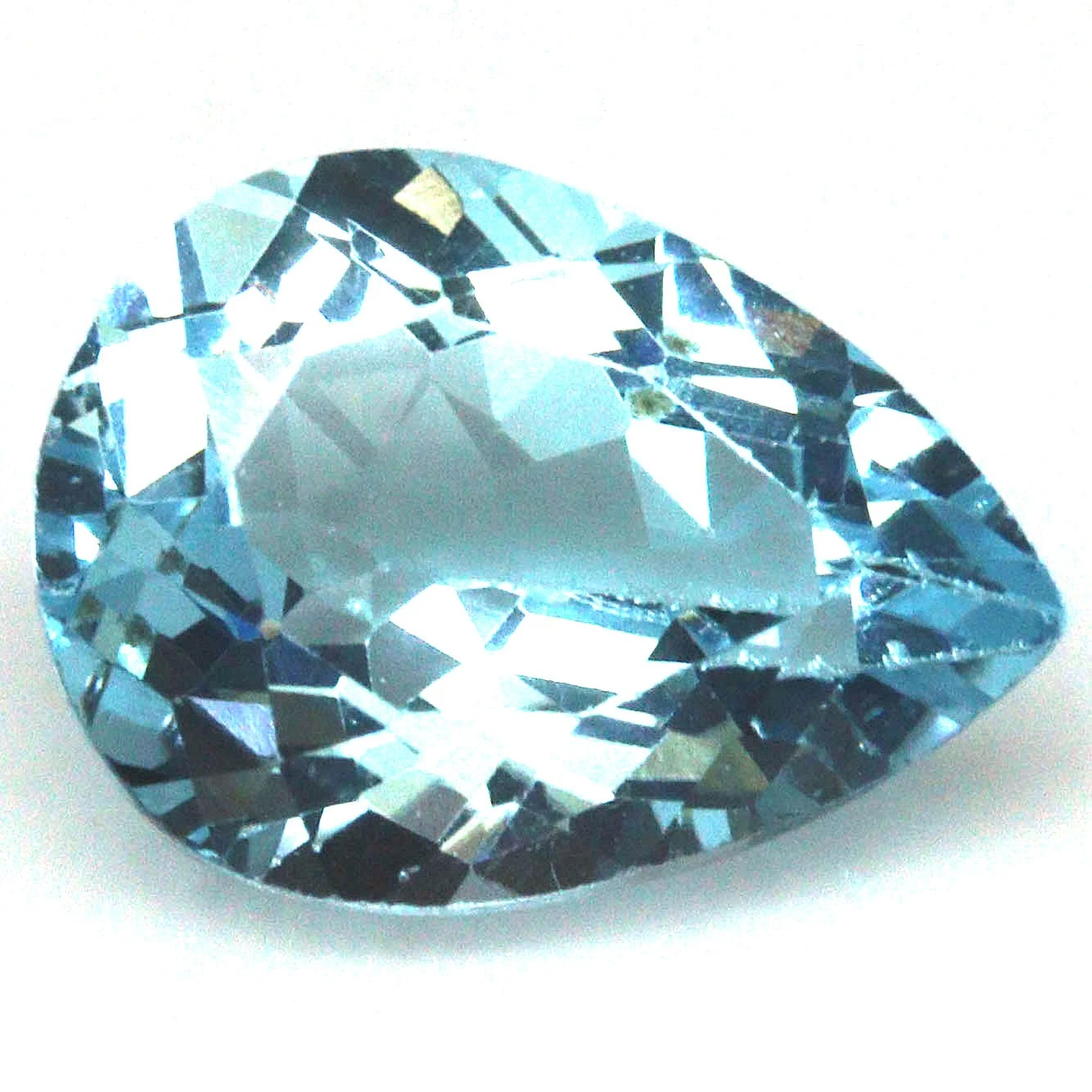9.93 karátos, csepp formájú, briliáns csiszolású, természetes, kezelt égszínkék topáz drágakő. Mérete: 11.9 x 15.9 x 7.6 mm.