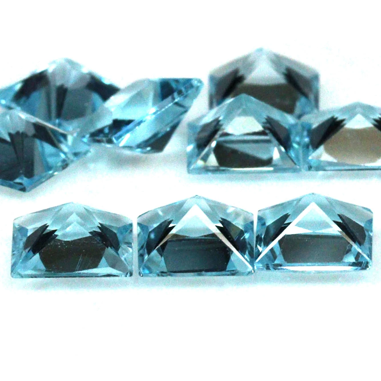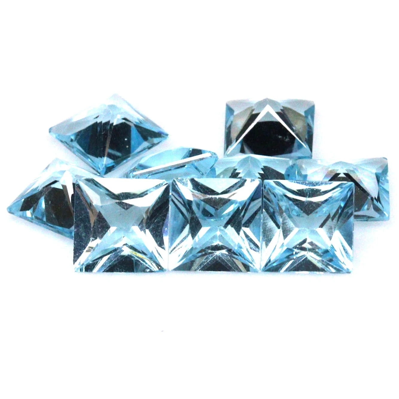Összesen 9.96 karátos, 9 darabos, természetes, kezelt, princessz csiszolású égszínkék topáz drágakő szett. Mérete: 6.1 x 6.1 x 3.2 - 6.0 x 6.0 x 3.8 mm.
