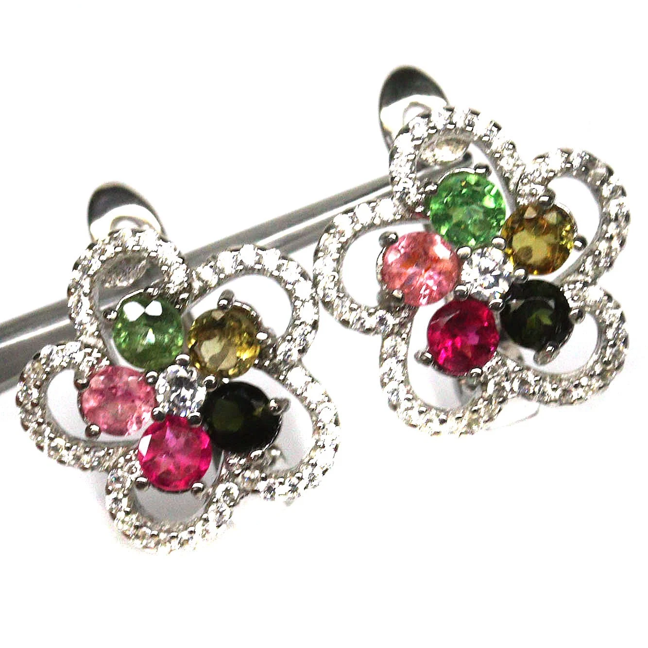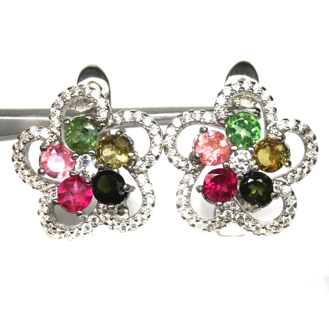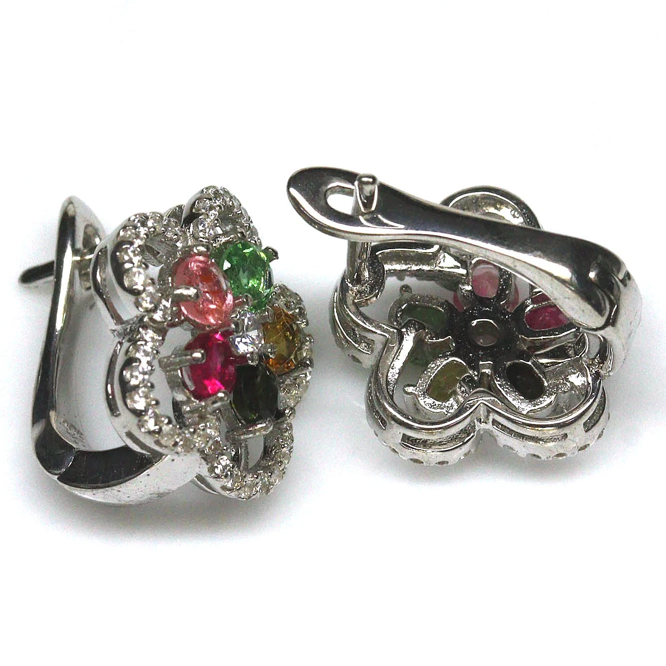 925-ös finomságú ezüst fülbevaló természetes, 4 mm-es kerek formájú turmalin drágakövekkel, és 2 mm-es természetes fehér cirkon drágakővel. Beszúrós, patentos kivitel. Mérete: 16.0 x 16.2 mm.